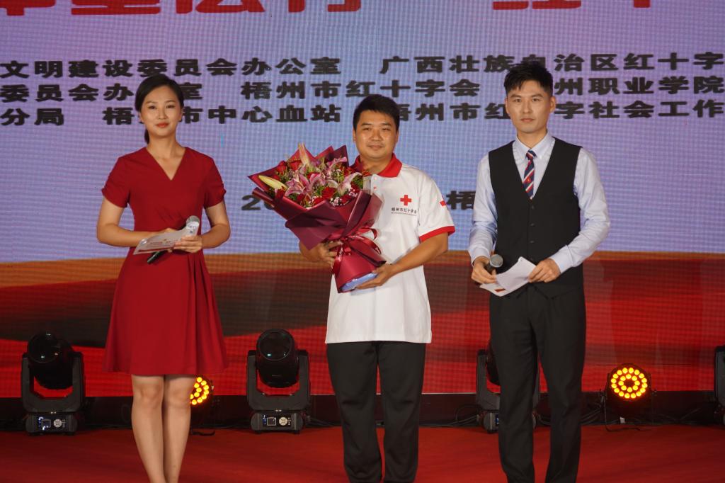 梧州市紅十字會黨組成員、專職副監事長郭麗、金年会黨委副書記、紀委書記賴浪濤、廣西廣播電視合綜藝旅遊頻道融媒體項目部總制片人陳繼先、蒼梧縣紅十字會專職副會長郭錦瑜、岑溪市紅十字會專職副會長藍衛出席了活動,梧州市紅十字志願者,學校師生代表及志願者代表參加了此次活動。